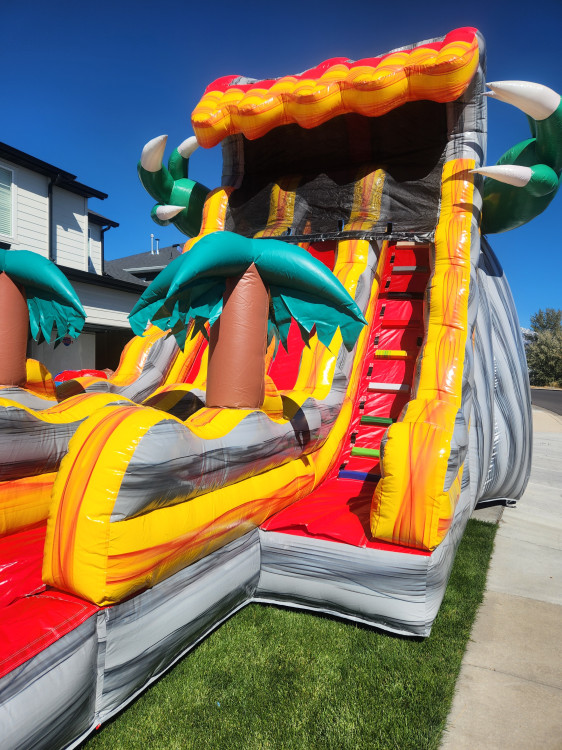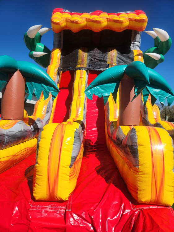 A towering 20-foot T‑Rex slide that turns any event into a dino adventure. Riders climb up the T‑Rex and rocket down steep, dual lane slides for a roaring finish—perfect for birthdays, school events, and festivals. Best for ages 5+ with active supervision; plan for a large, level setup area, clear overhead space, and secure anchoring.